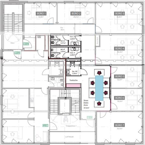 - 4-5 Personen Büro (ab 36m²) 1354,50 € (zzgl Mwst.)